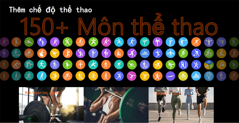 Đồng hồ thông minh GS Pro 2 sở hữu hơn 150 chế độ thể thao đa dạng từ các môn phổ biến như chạy bộ (trong nhà, ngoài trời), đạp xe, bơi lội, yoga, cho đến những hoạt động chuyên biệt như nhảy múa, các môn bóng, rèn luyện sức mạnh, trượt tuyết đều nhận diện sau đó ghi lại chi tiết hiệu suất của bạn. Mọi dữ liệu về quãng đường, calo tiêu thụ, nhịp tim cùng nhiều chỉ số khác đều được theo dõi chính xác, giúp bạn phân tích và nâng cao hiệu quả luyện tập toàn diện.