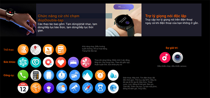 Đồng hồ Mibro GS Pro 2 được trang bị chức năng cử chỉ chạm đúp (Double-tap) cực kỳ thông minh, cho phép bạn thực hiện các thao tác quan trọng tức thì chỉ bằng một cú chạm đúp đơn giản trên cổ tay. Dù bạn đang luyện tập hăng say hay bận rộn với công việc, bạn có thể dễ dàng tạm dừng hoặc tiếp tục phát nhạc, tắt/bật báo thức, hay tạm dừng/tiếp tục bộ đếm thời gian mà không cần phải chạm vào màn hình hay tìm kiếm nút vật lý. Khả năng tương tác nhanh chóng kết hợp trợ lý giọng nói độc lập dễ dàng truy cập ngay cả khi điện thoại không ở gần cực kỳ trực quan, tiện lợi.