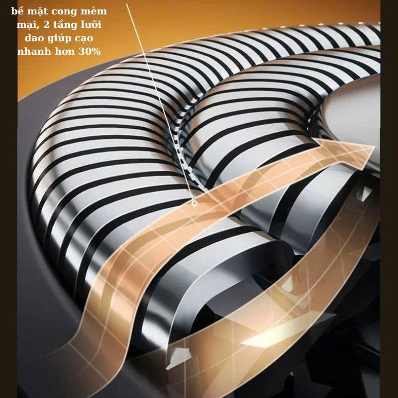 Thiết kế mặt bảo vệ dạng xoắn ốc hai tầng, giúp tăng diện tích tiếp xúc và hiệu quả cạo lên 30% so với loại thông thường.
