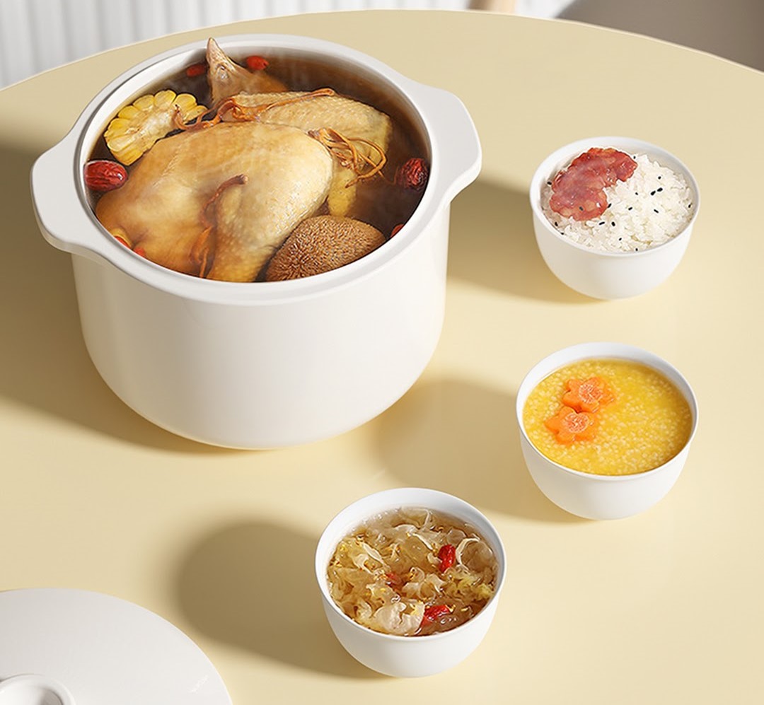 Bên cạnh đó, với mức gia nhiệt thấp và không cần phải gia nhiệt trước, nồi hầm chậm điện ZOLELE cực kỳ phù hợp sử dụng để chế biến thức ăn dặm cho bé. Từ đó, mẹ có thể sử dụng nồi để nấu cháo cho bé, cháo sẽ được nấu sánh và nhừ mà không bị vỡ hạt gạo, hạn chế ảnh hưởng đến dưỡng chất và vị ngọt của hạt gạo. Sử dụng nồi nấu chậm cũng giúp các thực phẩm được hầm mềm, giúp hệ tiêu hóa của bé dễ hấp thụ hơn.