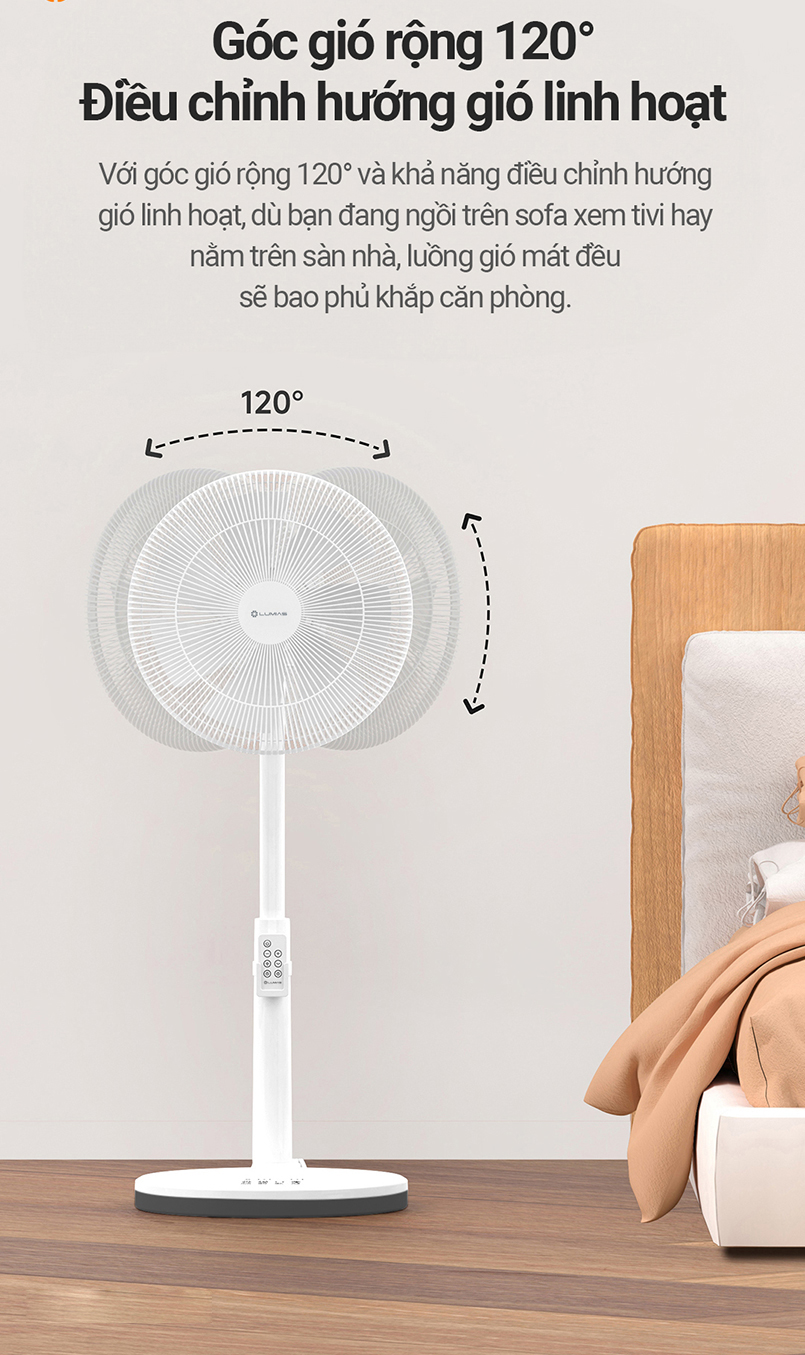 Góc gió rộng 120°, điều chỉnh hướng gió linh hoạt