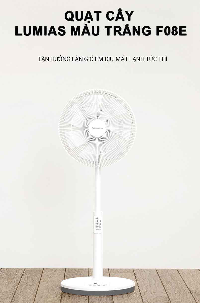 Quạt cây Lumias màu trắng F08E động cơ DC không chổi than giảm ồn tối đa