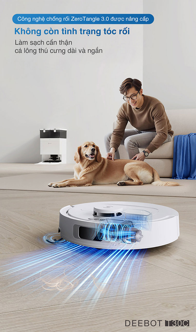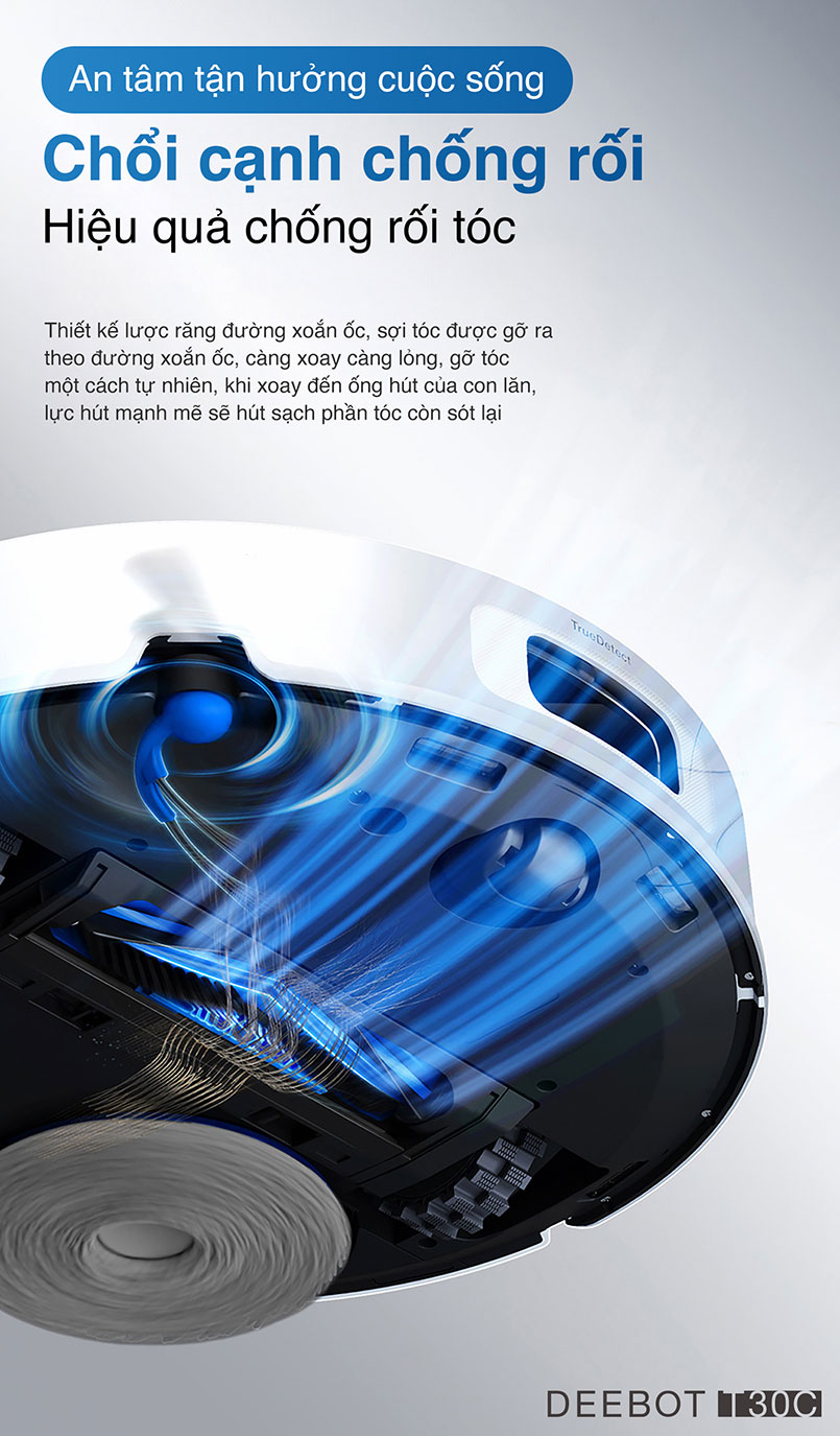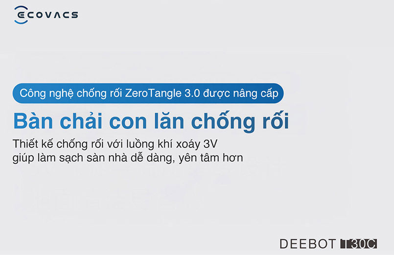 Ecovacs Deebot T30C là robot hút bụi lau nhà tự động thế hệ mới, được trang bị công nghệ chống rối ZeroTangle 3.0 cải tiến, phát triển dựa trên phiên bản ZeroTangle 2.0. Hệ thống cải tiến này tích hợp chổi cạnh chống rối ARClean và cấu trúc chống rối Triple-V tiên tiến, đảm bảo hiệu quả làm sạch mà không bỏ sót bất kỳ sợi tóc rối nào.