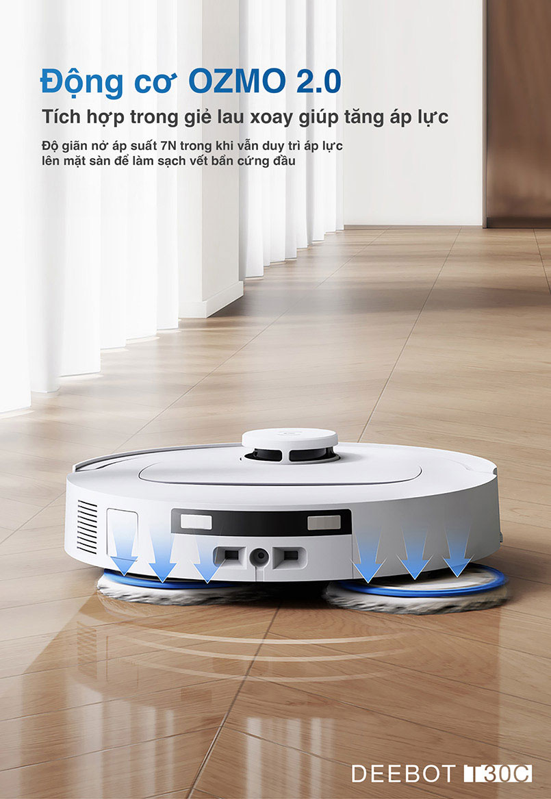 Với công nghệ lau OZMO™Turbo 2.0, việc làm sạch sàn nhà trở nên dễ dàng và hiệu quả hơn bao giờ hết. Hai miếng lau sàn xoay liên tục với lực lau mạnh mẽ đánh bay mọi vết bẩn cứng đầu như vết cà phê khô hay nước tương. Robot hút bụi lau nhà Ecovacs Deebot T30C có hệ thống cấp nước tự động, bơm liên tục đảm bảo giẻ lau luôn ở độ ẩm lý tưởng để đạt được hiệu quả làm sạch tốt nhất, mang đến cho bạn sàn nhà sạch luôn sáng bóng và không tì vết, giúp bạn quên đi nỗi lo phải tự tay xử lý các vết bẩn cứng đầu.